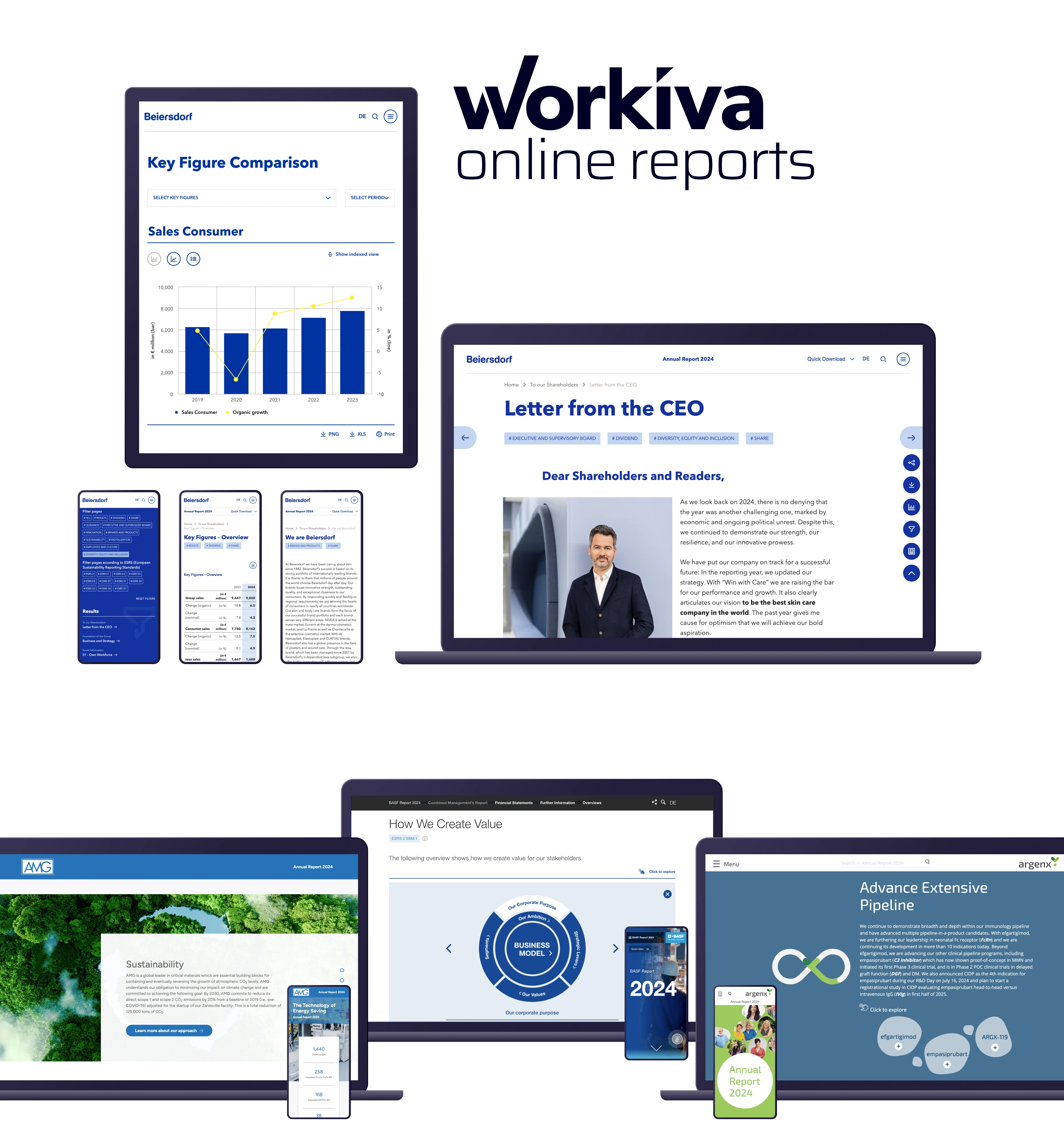 In terms of reporting, argenx, BASF, and Beiersdorf are thinking “Online from DMS” (Disclosure Management System): With nexxar’s in-house solution we directly connect Workiva with our high-end digital reports. This ensures consistency and efficiency throughout different media.